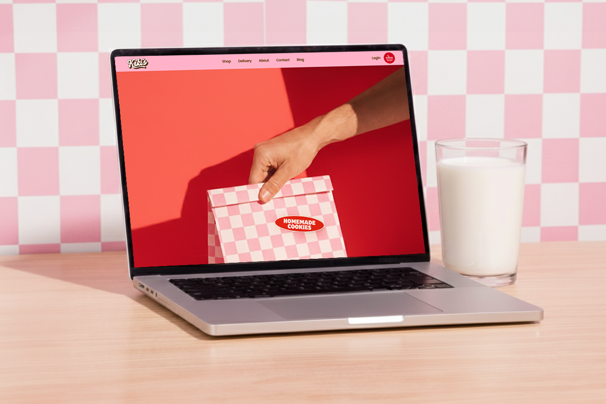The goal was to design a brand presence that feels as joyful and indulgent as the cookies themselves. Inspired by shared moments and small-batch care, Kiki’s visual identity evokes a sense of warmth, celebration, and craveability. The playful checkerboard pattern evokes a sense of nostalgia—like gathering around a kitchen table—while the retro-modern palette adds comfort, charm, and visual cohesion across every brand touchpoint.